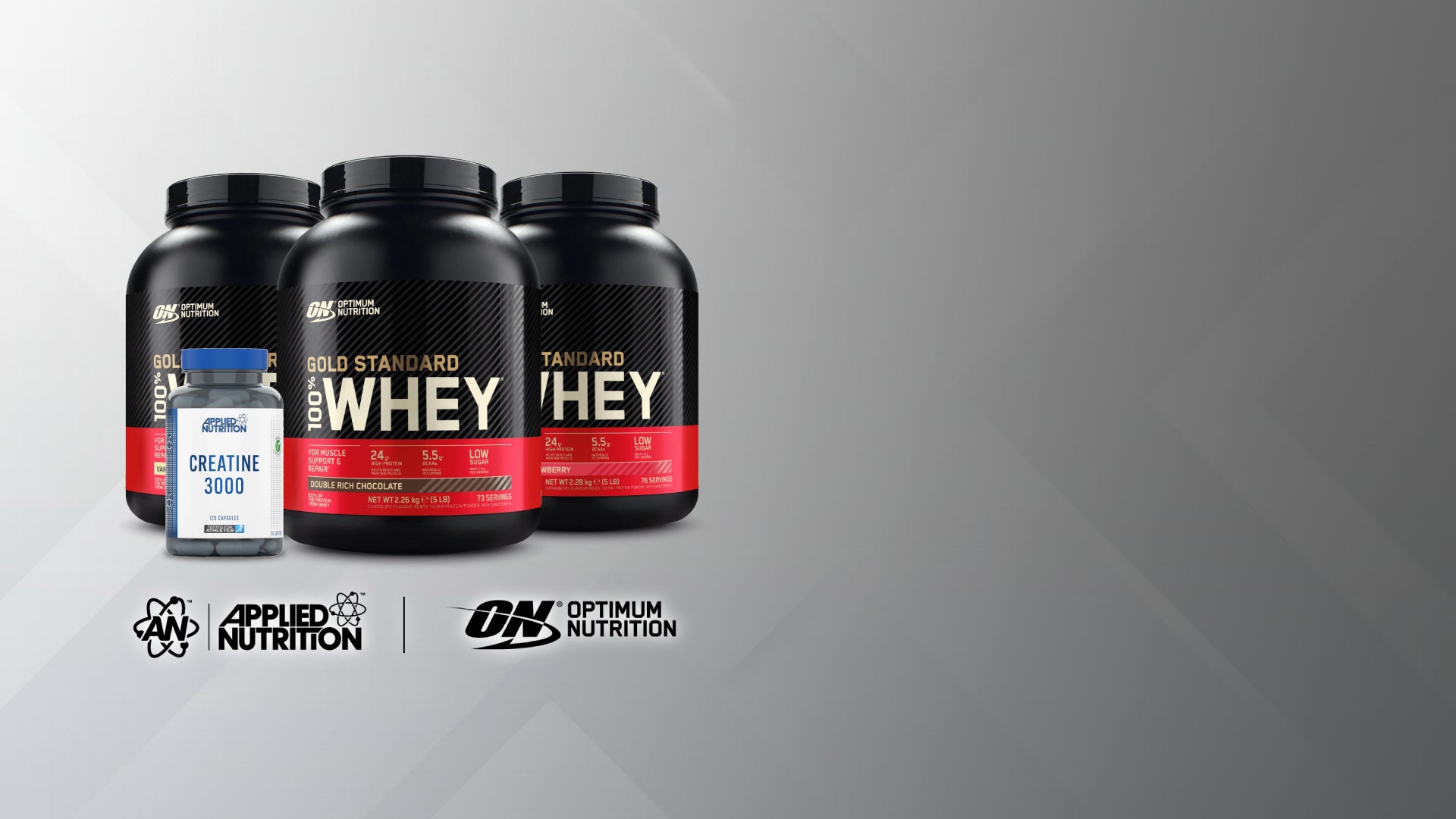 Purchase the 2270 g jar of Optimum Nutrition's Gold Whey to get one FREE jar of Applied Nutrition's Creatine 3000!