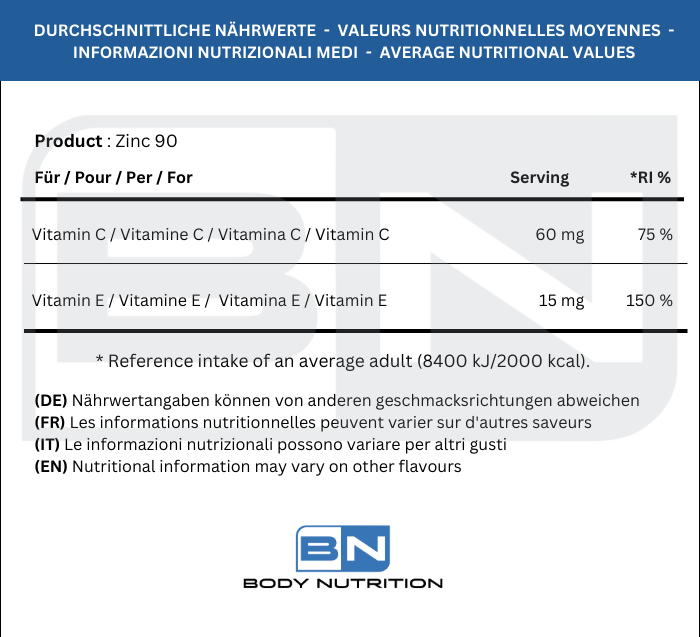 • Immune System Support – Zinc and Vitamin C work synergistically to contribute to the normal function of the immune system, especially during and after intense physical exercise.​