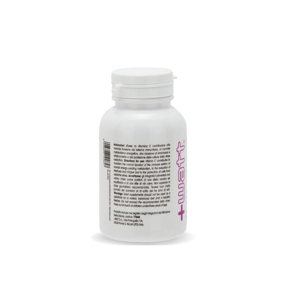 +Watt Vitamin C 500 mg è una formulazione in capsule vegetali a base di vitamina C, realizzata per fornire un apporto regolare di questo micronutriente. La composizione essenziale e lineare consente un utilizzo pratico ogni giorno.