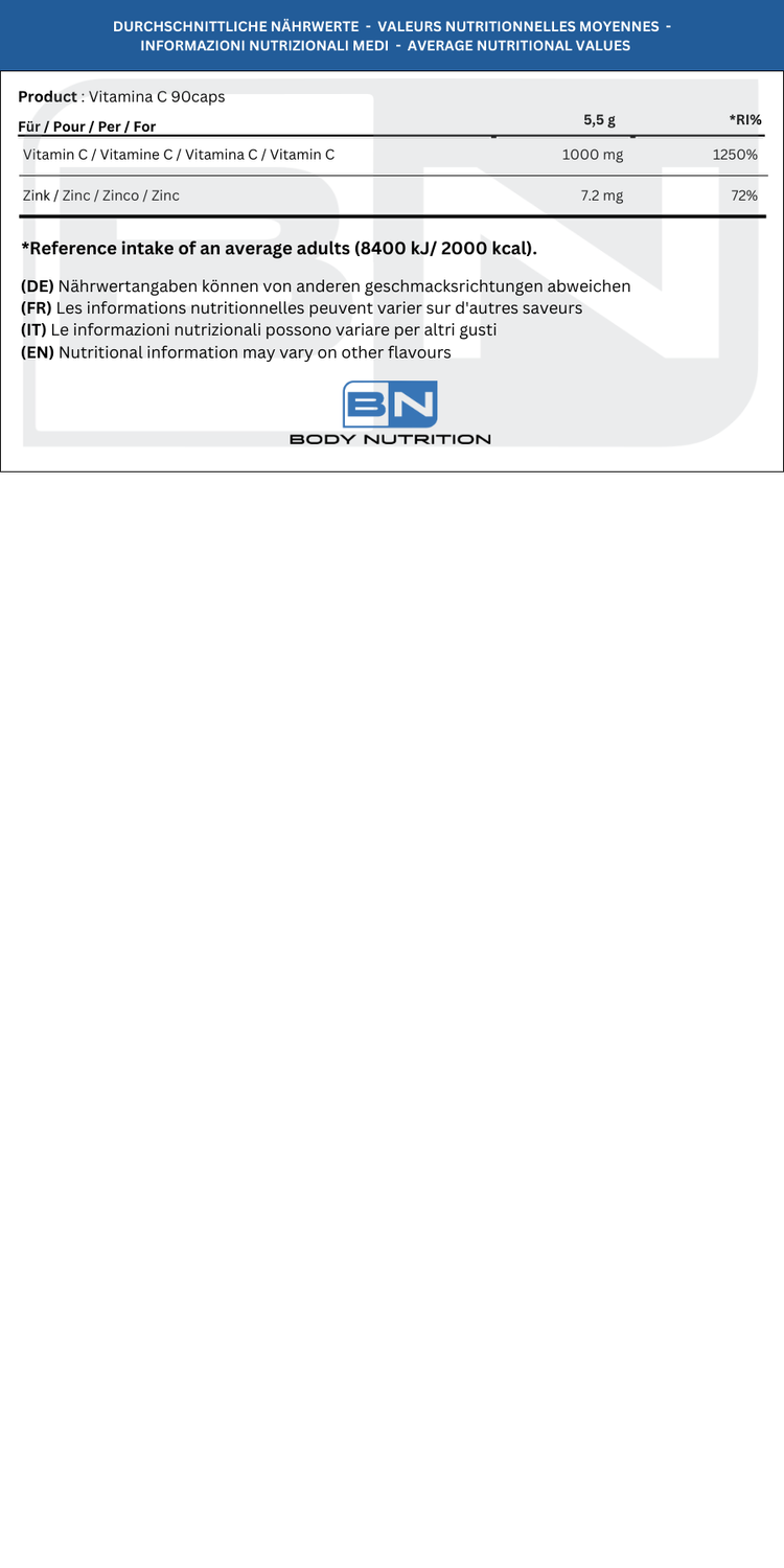La composizione è studiata per garantire una buona biodisponibilità e un utilizzo pratico nella routine quotidiana. Le capsule vegetali, senza glutine e prive di ingredienti di origine animale, sono adatte anche a chi segue un’alimentazione vegetariana o vegana. Ogni dose fornisce 1.000 mg di vitamina C, rendendo il prodotto una soluzione semplice e sicura per integrare l’alimentazione in modo equilibrato.