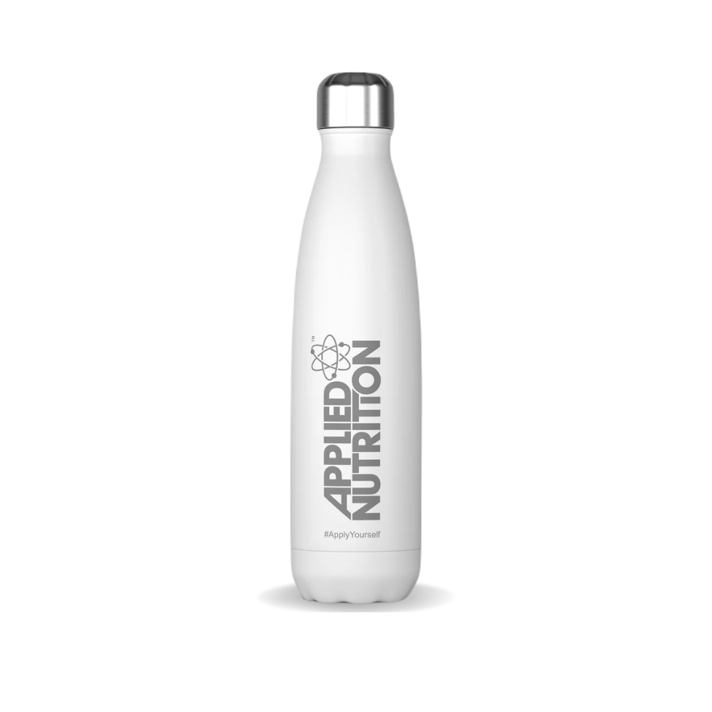 Applied Nutrition Flask 500ml with thermal insulation and leak-proof screw cap. BPA-free stainless steel design keeps drinks cold for 24 hours or hot for 12 hours.