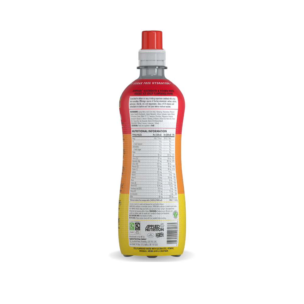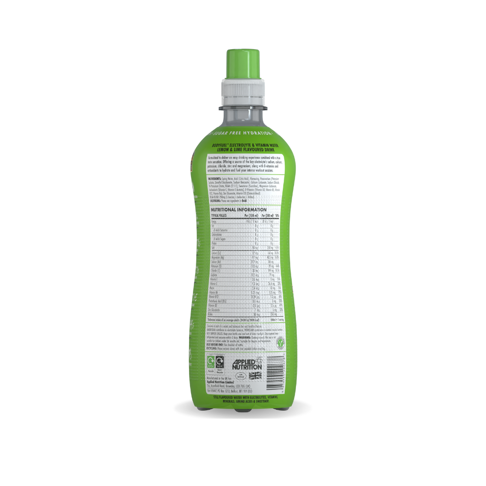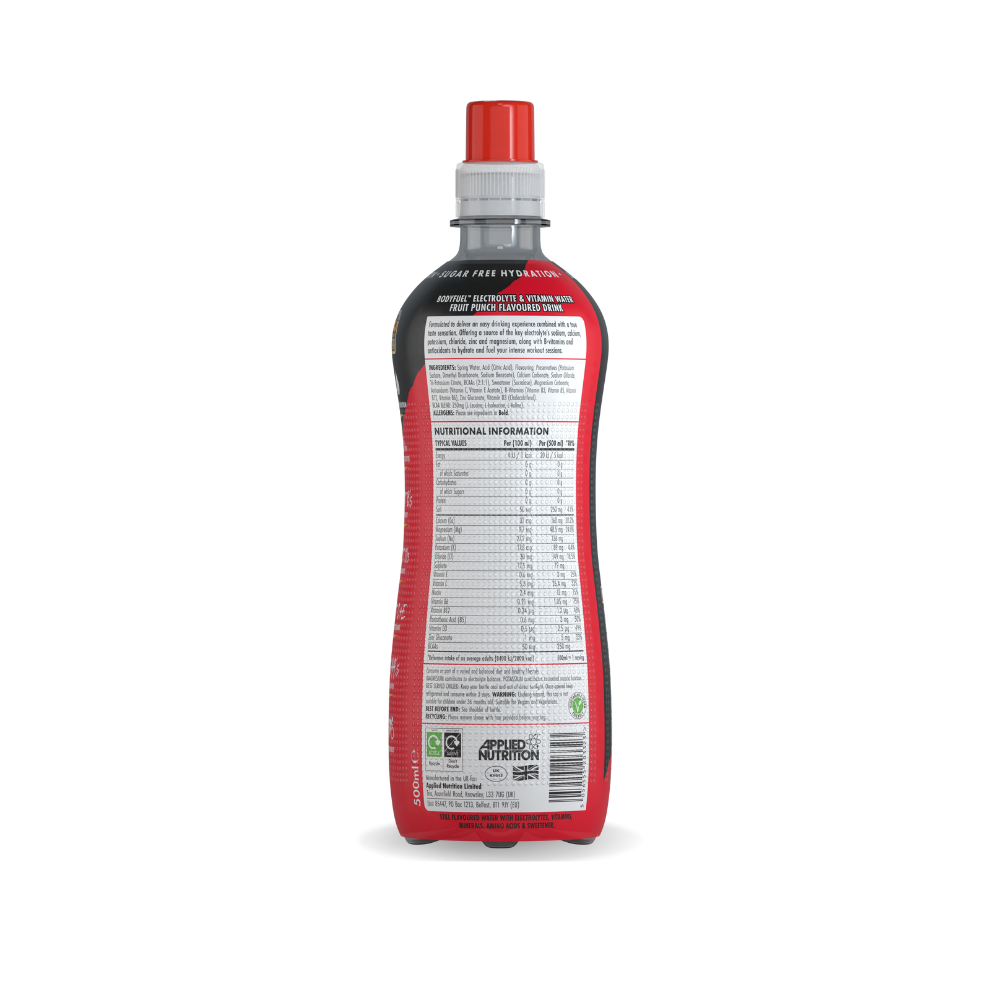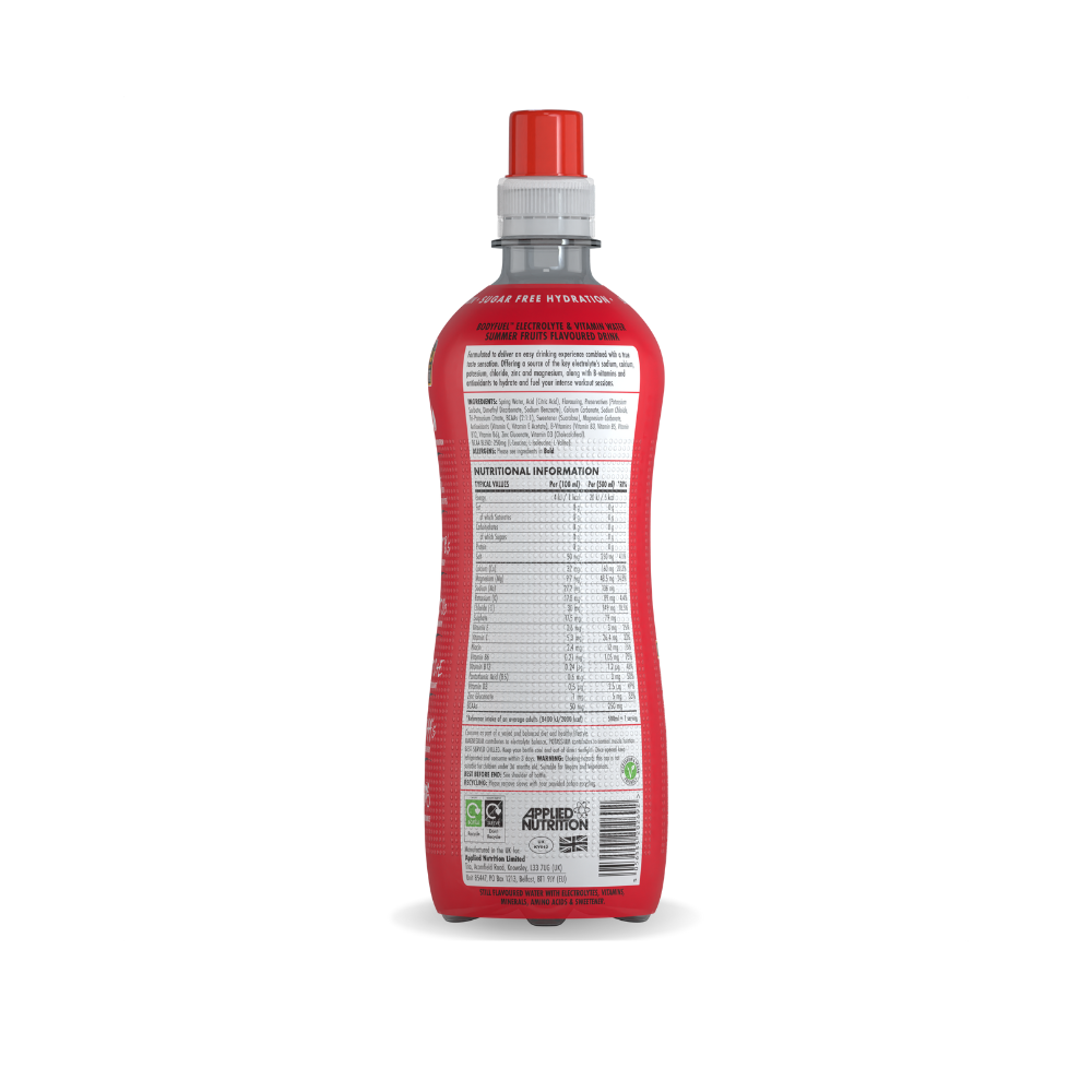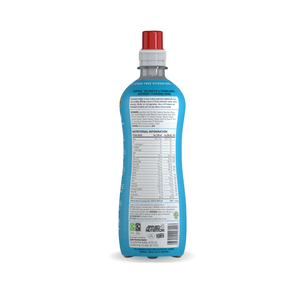 BodyFuel™ Electrolyte Water by Applied Nutrition is a functional hydration drink designed to fuel your body with essential minerals and vitamins. Whether you are an elite athlete or just need a refreshing boost during your day, this sugar-free formula offers rapid rehydration and performance support in a convenient ready-to-drink format.