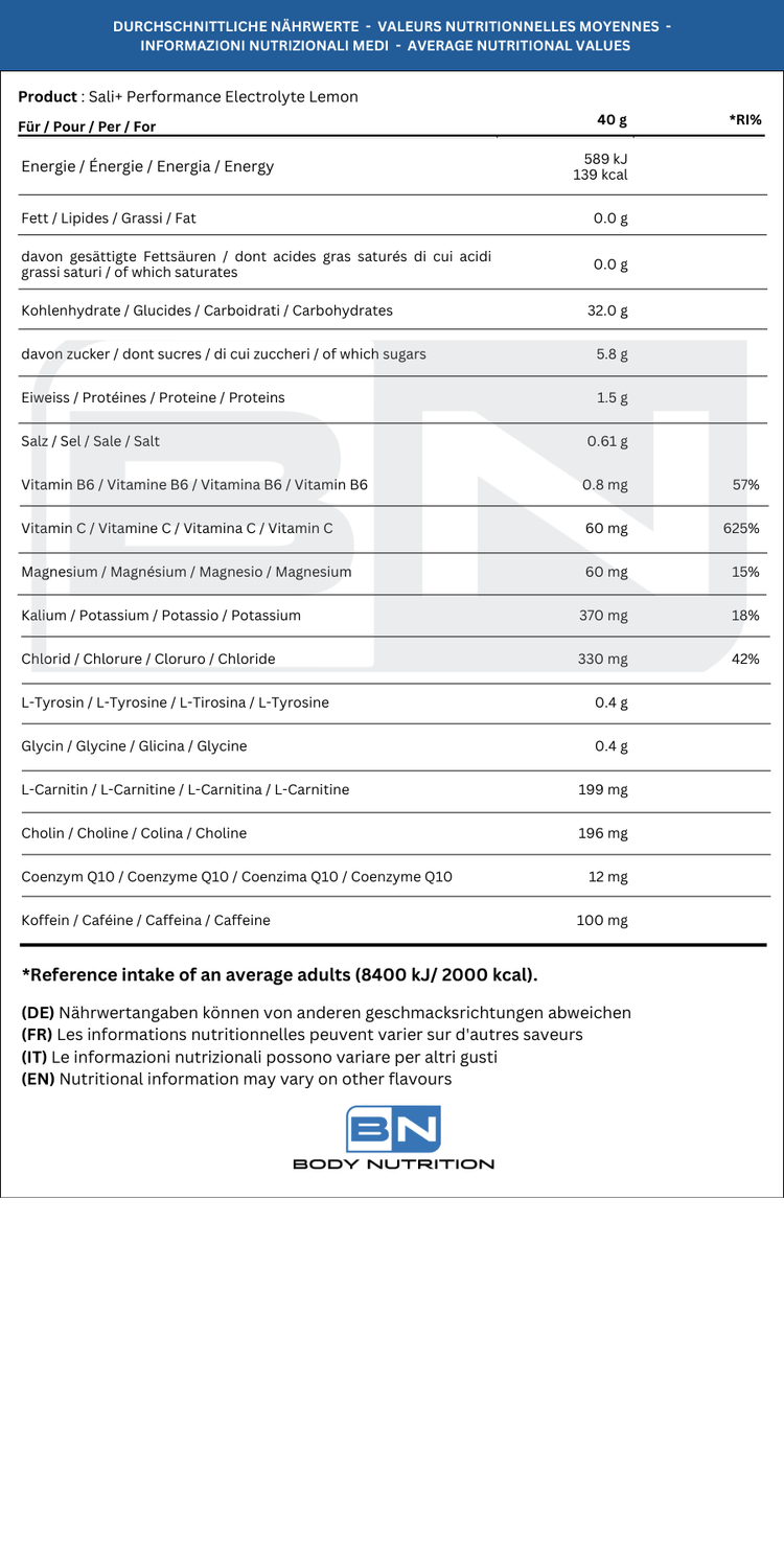 Sali+ Performance Electrolyte contient un mélange plus complet, avec l'ajout d'acides aminés, de L-carnitine, de coline, d'enzyme Q10 et de caféine, offrant un apport plus important de recette dans la version traditionnelle.