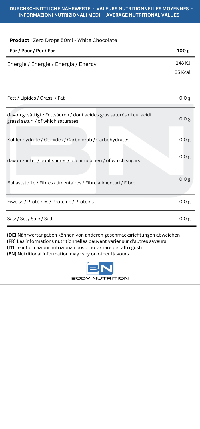 1. Zero Drops Cioccolato Bianco contiene zuccheri o calorie?
