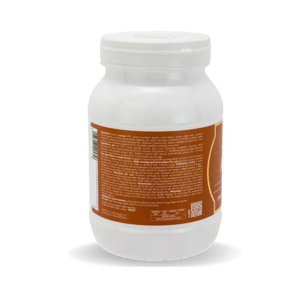 Caratteristiche nutrizionali: senza glutine, con edulcoranti, ad alto contenuto di fibre e arricchito con micronutrienti essenziali per il metabolismo energetico.