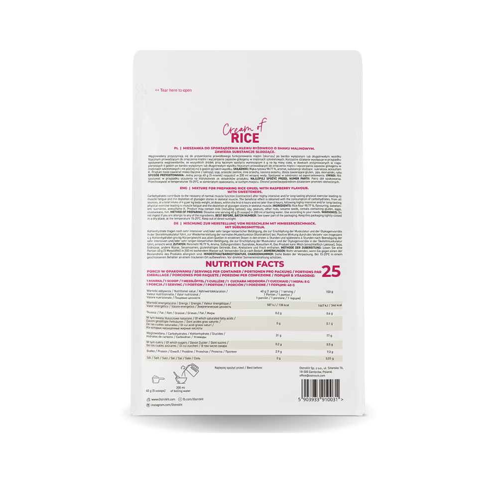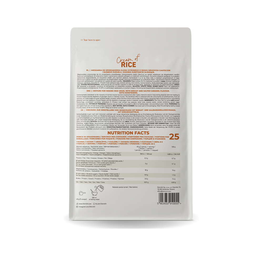 Farina di riso al 100%, una delle fonti di carboidrati più semplici, digeribili e versatili. OstroVit Crema di Riso è una polvere fine, perfetta per chi cerca energia veloce e un alimento pratico da inserire in colazioni, spuntini o pre-workout.