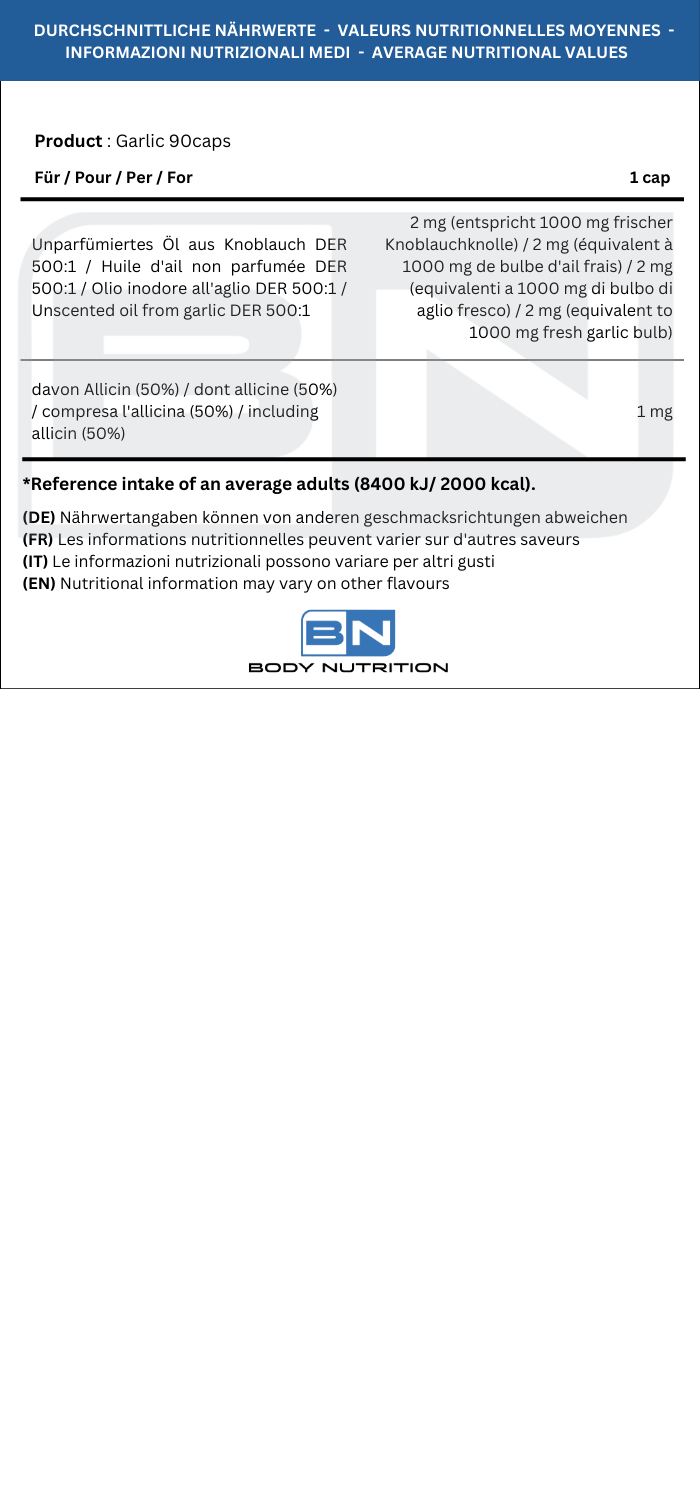 • 2 mg di olio per capsula (≈ 1 g aglio fresco)