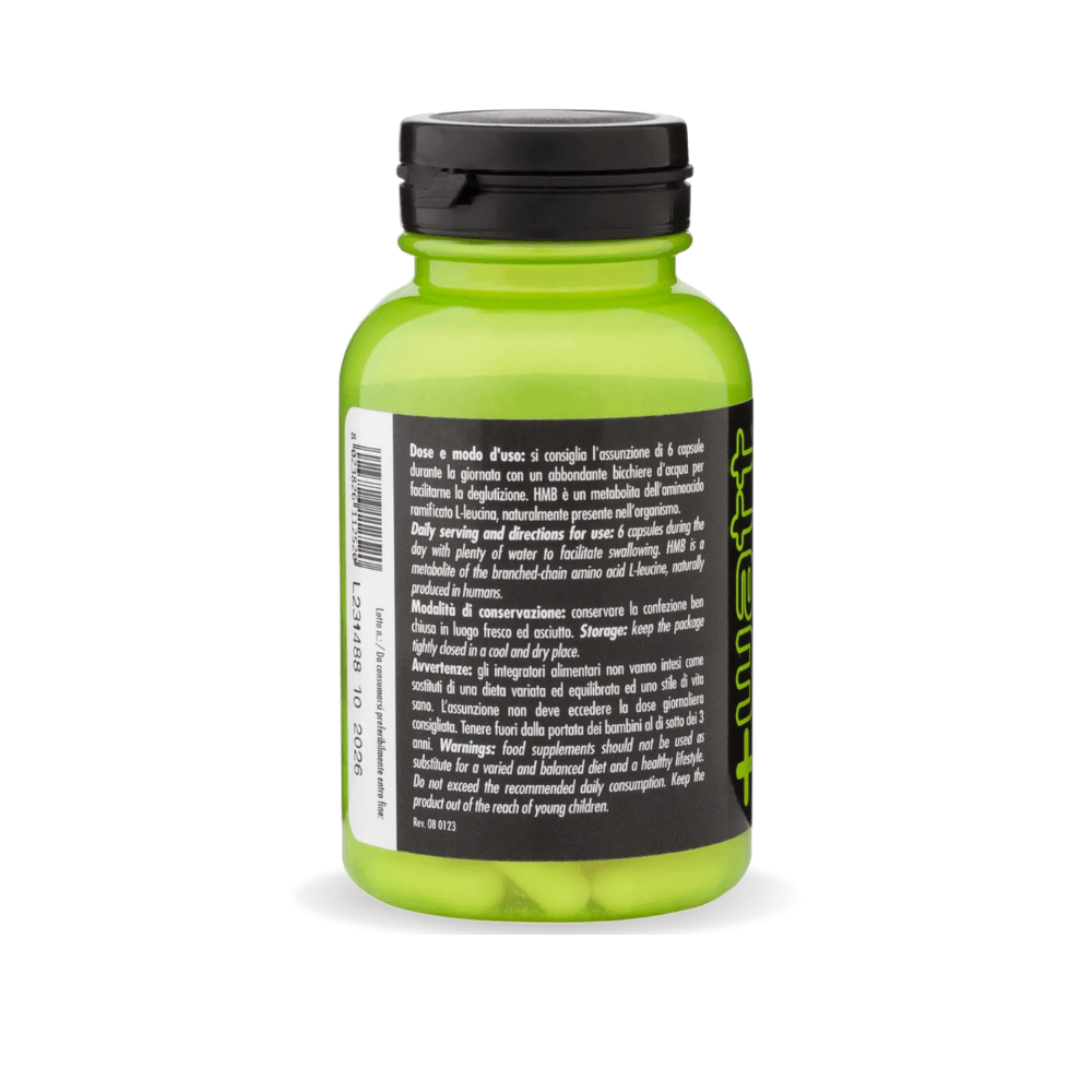 Ogni dose giornaliera fornisce 3 g di HMB, distribuiti in capsule pratiche e semplici da assumere, adatte anche a chi segue diete specifiche. Il prodotto è senza glutine, lattosio e caffeina, e rispetta gli standard qualitativi e di sicurezza previsti dalla normativa europea per gli integratori alimentari.