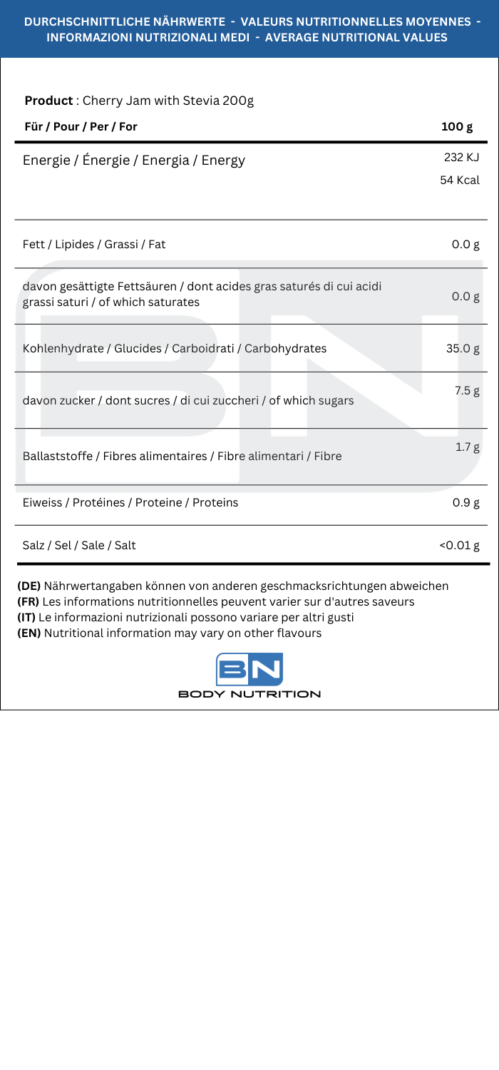 Aggiungi la Confettura di Ciliegie BPR Nutrition alla tua routine per un gusto intenso e naturale, con leggerezza.