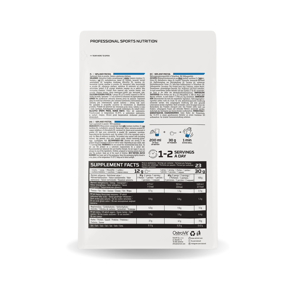 Le proteine del siero del latte sono un classico intramontabile per chi vuole rendere più semplice e gustoso l’apporto proteico quotidiano. OstroVit Whey Protein 100% contiene proteine concentrate, ricche di aminoacidi essenziali e ramificati (BCAA ed EAA), in una polvere facile da sciogliere e disponibile in vari gusti cremosi.
