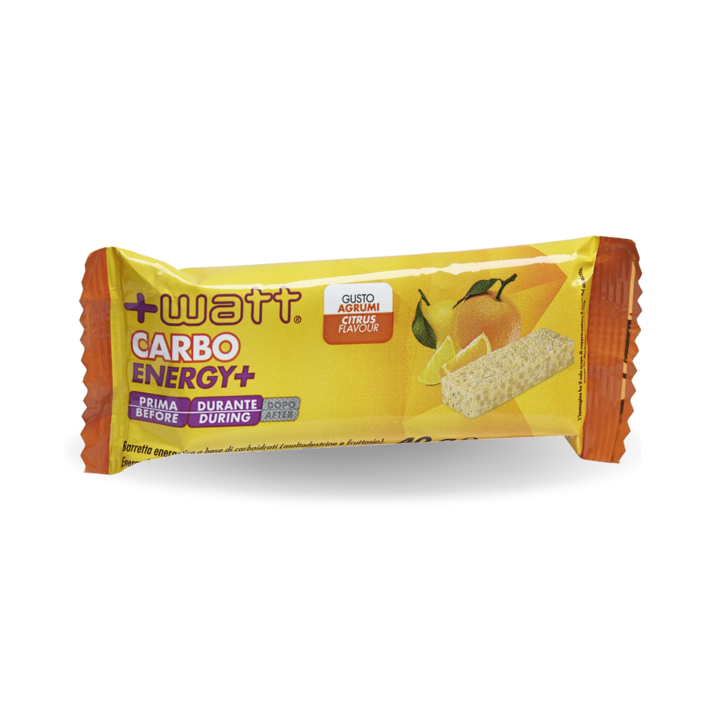 +WATT Carbo Energy+ è una barretta energetica formulata con una miscela di carboidrati a diverso indice glicemico, studiata per garantire un rilascio energetico progressivo. Fornisce energia immediata e di lunga durata, risultando ideale prima o durante l’attività fisica, in particolare negli sport di resistenza e negli allenamenti di elevata intensità.
