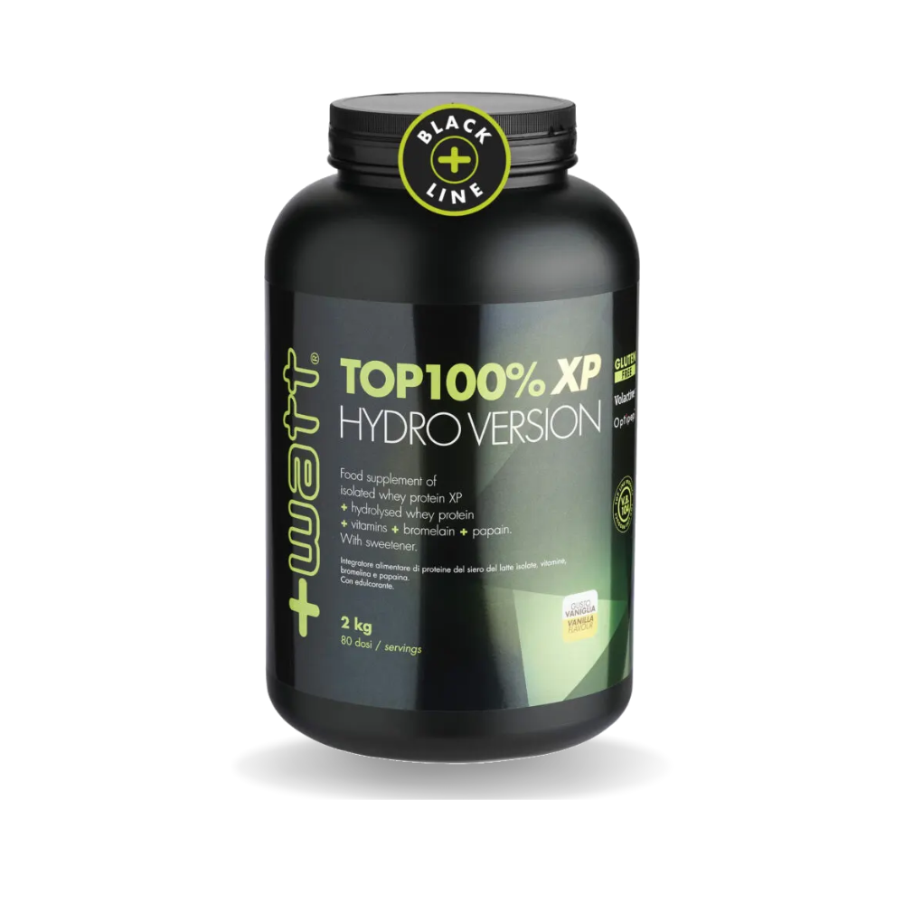 +Watt TOP 100% XP Hydro Version è un integratore alimentare in polvere a base di sieroproteine isolate Volactive® e idrolizzate Optipep®, formulato per offrire una fonte proteica di altissima qualità, adatta agli sportivi che cercano il massimo dell’assimilazione e della purezza nutrizionale.